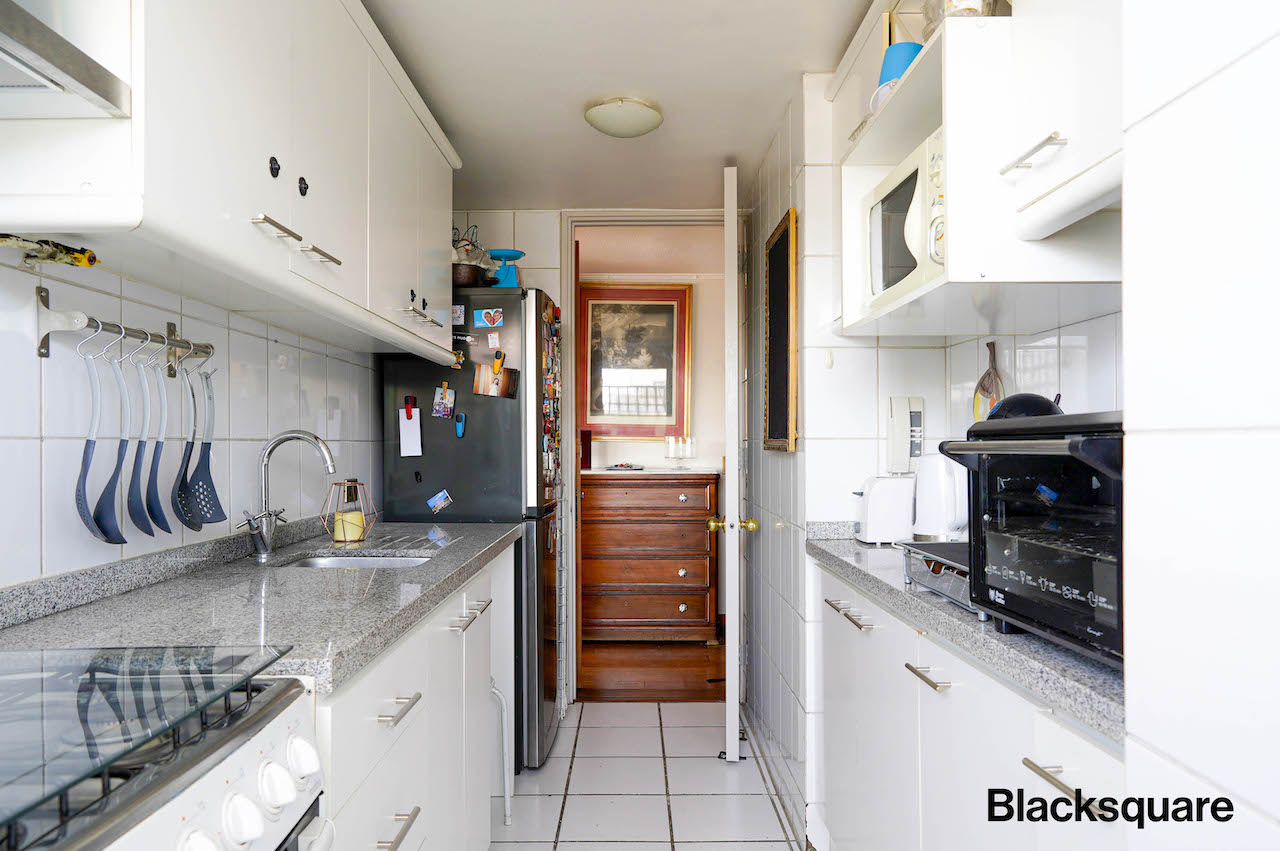 Se accede a través de un hall, el que nos lleva al living comedor, amplio y con una increíble visita norte, despejada y asegurada. Luego, nos encontramos con la cocina, equipada y con logia.