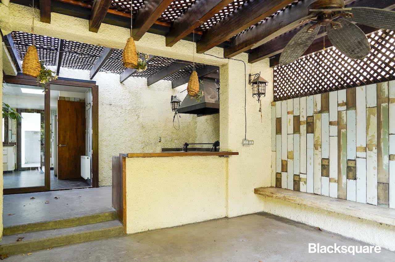Contiguo al quincho, está la cocina, totalmente equipada con amplios mesones y espacios para compartir en familia. A continuación está el dormitorio de servicio con su baño y el lavadero.