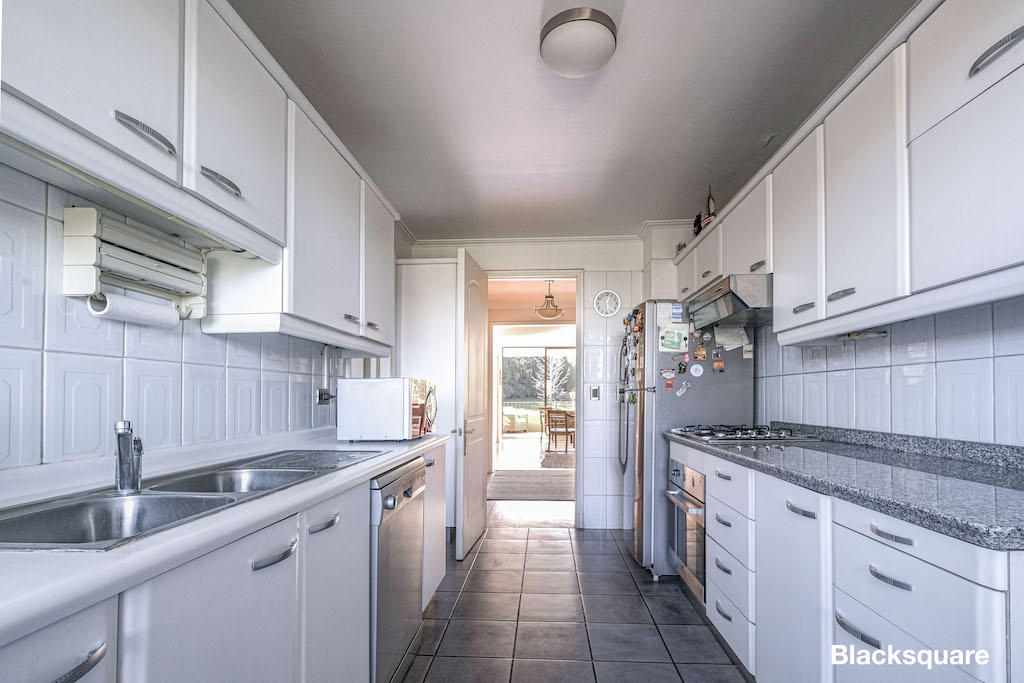 El amplio departamento cuenta con un hall de acceso que lleva al gran living comedor con salida a la terraza y una impresionante vista al parque. Además, tiene baño de visitas. Contiguo hay una cómoda sala de estar, la que comparte la misma terraza y por consiguiente la espectacular vista. Luego, nos encontramos con la cocina, totalmente equipada. Además, tiene logia y dormitorio de servicio.