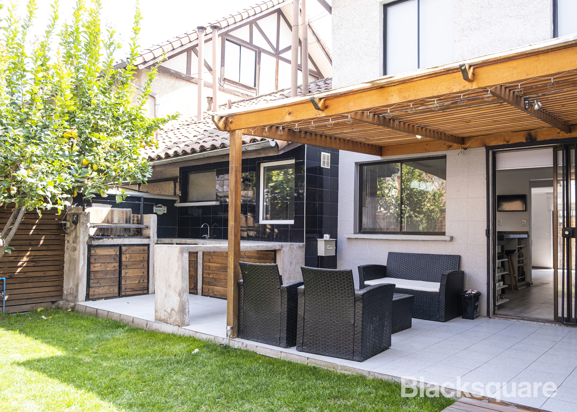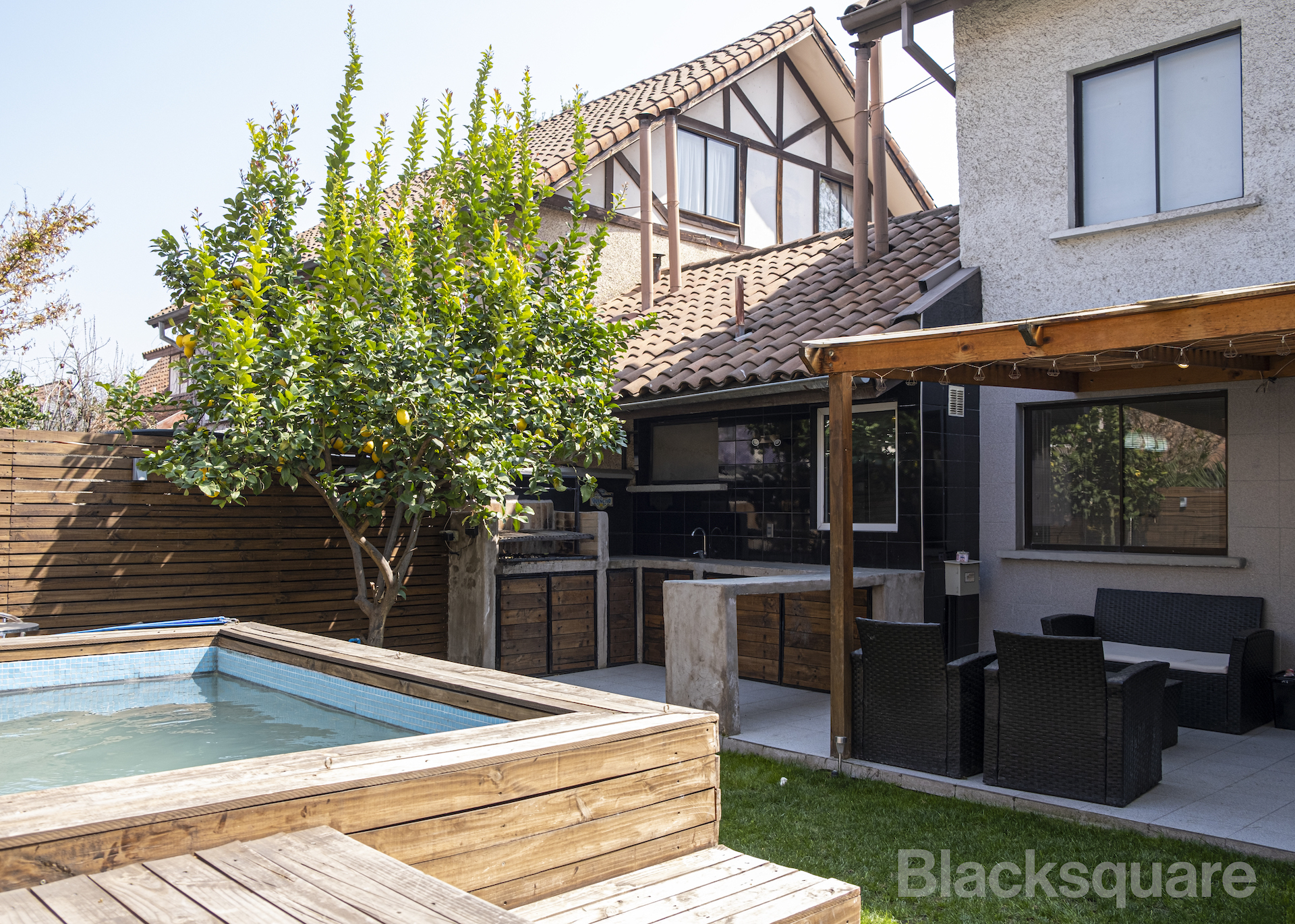 En el primer piso se encuentra un amplio living independiente, una gran cocina americana que se combina con el comedor. Muy destacable es su jardín, el que cuenta con una cómoda terraza, quincho y una piscina con un deck ideal para disfrutarla.