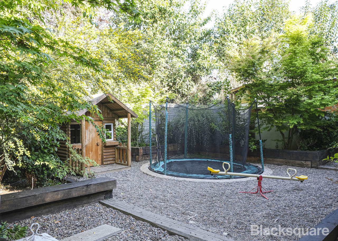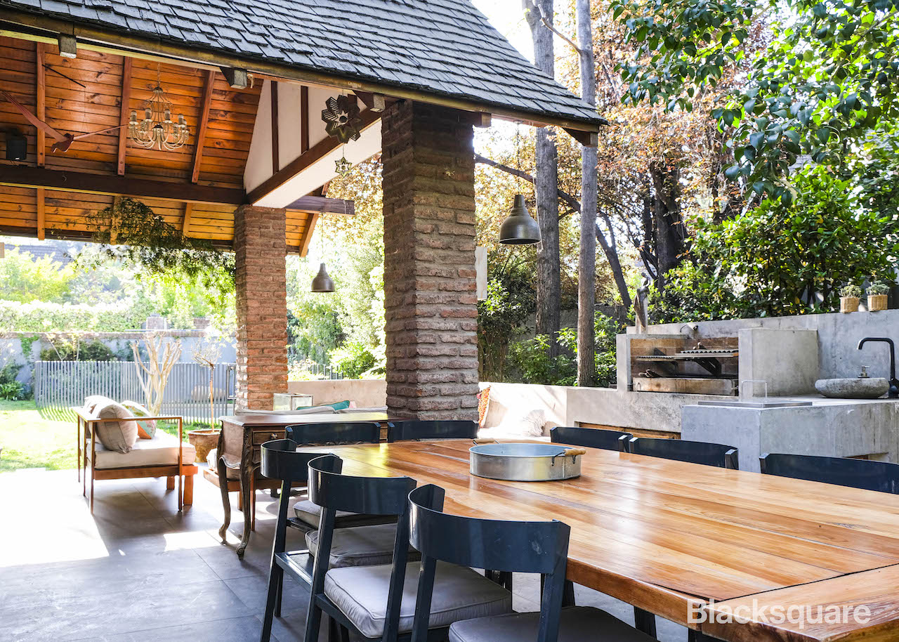 Tiene un amplio jardín con piscina, pozo de arena, casa de muñecas, cama saltarina y terraza con quincho, y estacionamiento para 2 autos.