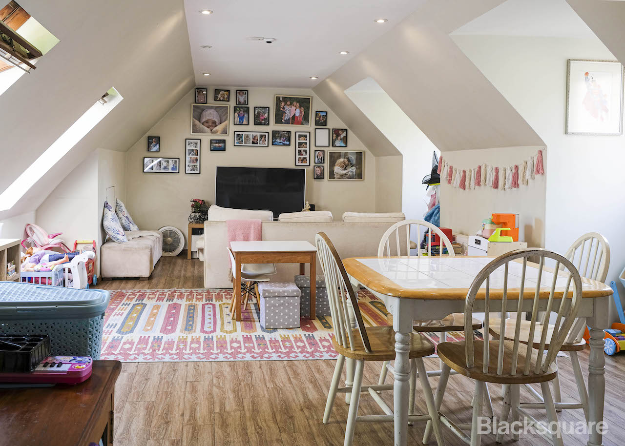 En el segundo piso hay una gran sala de estar y 2 dormitorios que comparten 1 baño.