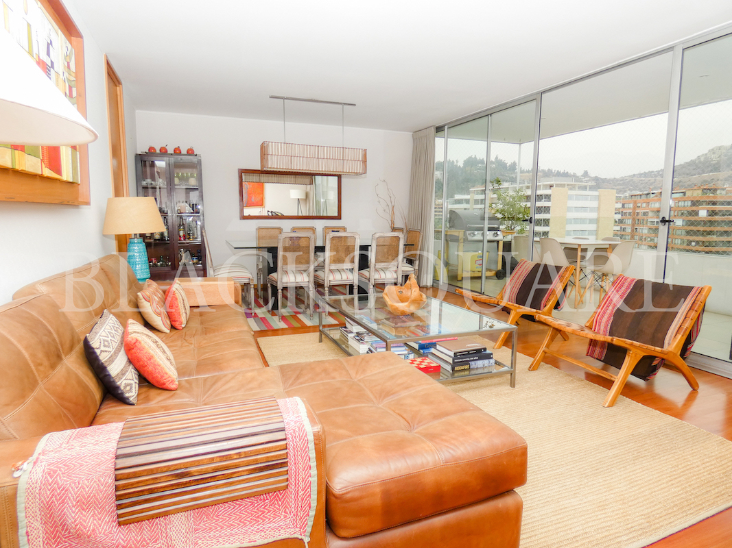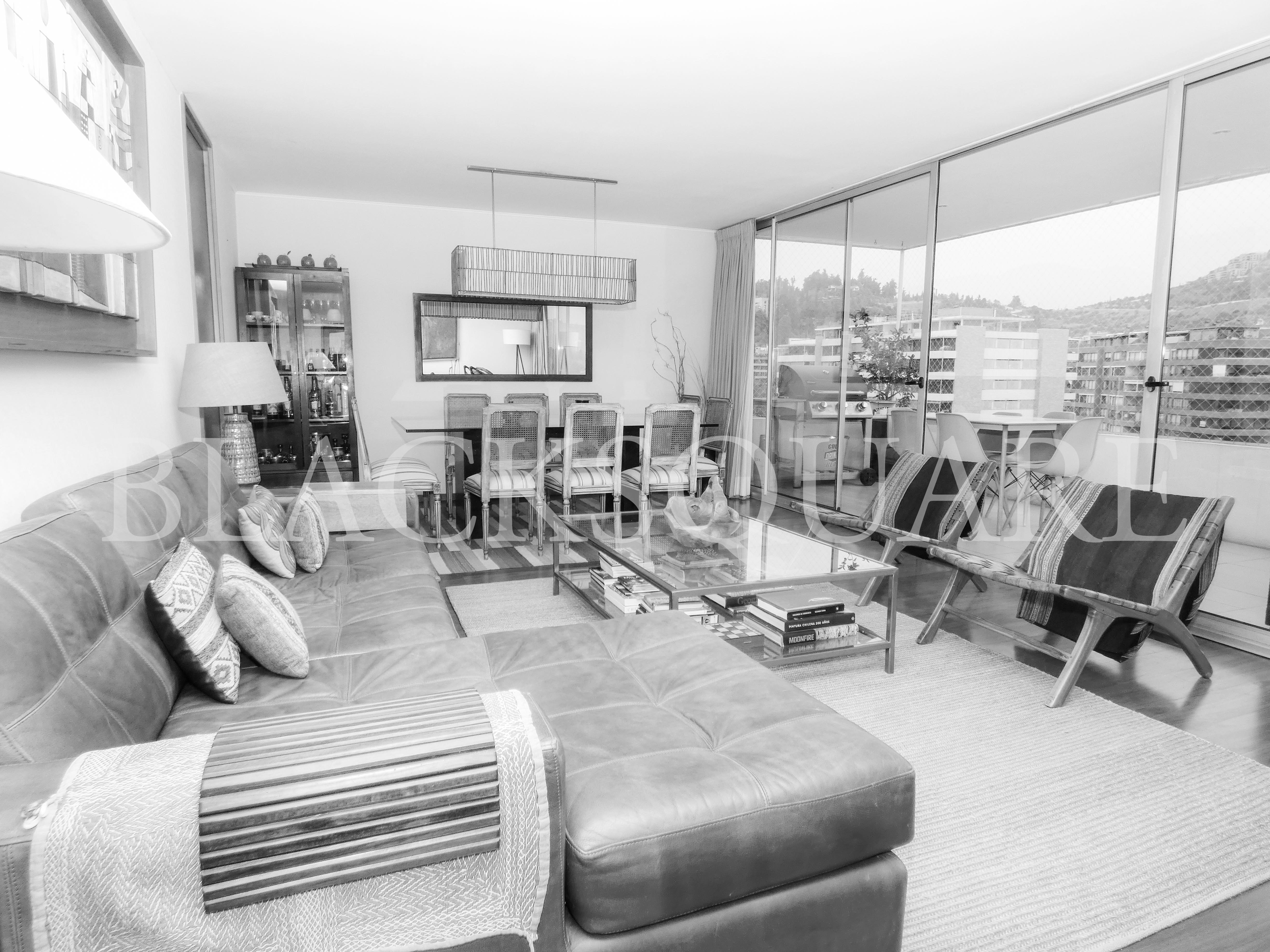 Lujoso Departamento cercano al Colegio Manquehue y Sport Francés con excelente acceso a la Autopista Costanera Norte. Destaca la espectacular vista a la cordillera y áreas comunes del condominio, la que tienen todos los recintos del departamento.