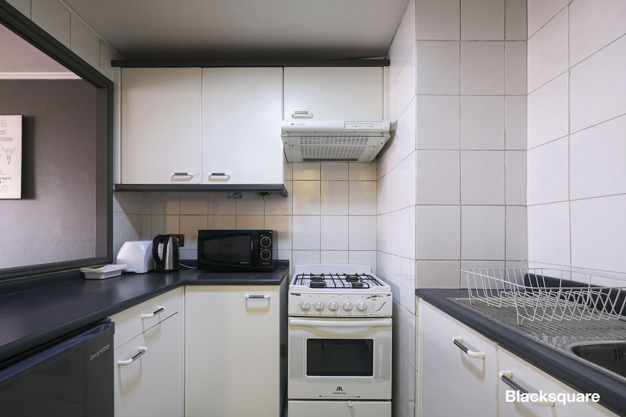 El departamento, totalmente amoblado con acogedor equipamiento, cuenta con amplio living comedor con acceso a la cocina y a la terraza, esta última con una agradable vista norte. La cocina, equipada, cuenta con todo lo que se necesita.
