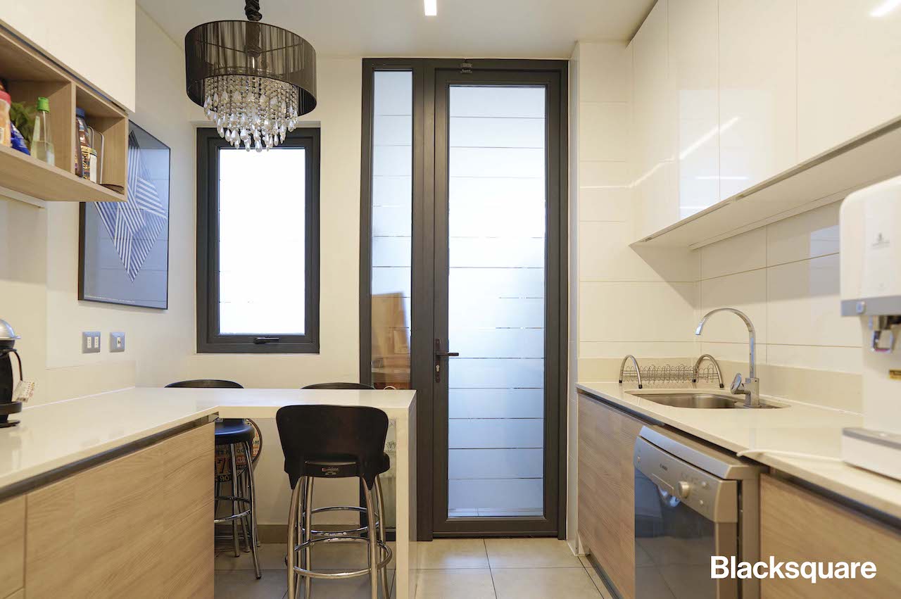 La cocina, totalmente equipada, tiene comedor de diario, logia y dormitorio de servicio con su baño. En cuanto a sus terminaciones, los muebles son lacados y las cubiertas de cuarzo.
