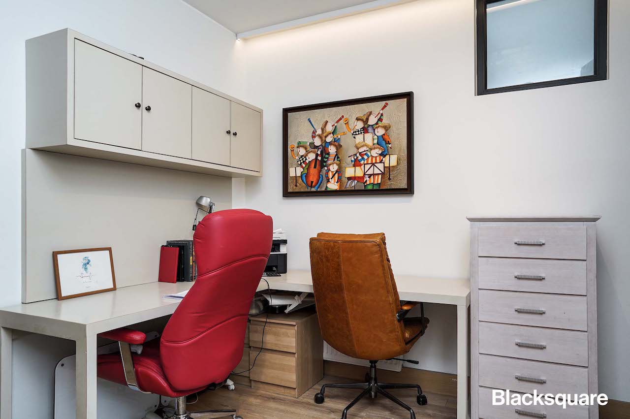 Luego, hacia los dormitorios, nos encontramos con una sala de estar, la que también puede ser usada como home office. El dormitorio principal, es en suite y tiene walk in closet. Los otros dos dormitorios comparten un baño.