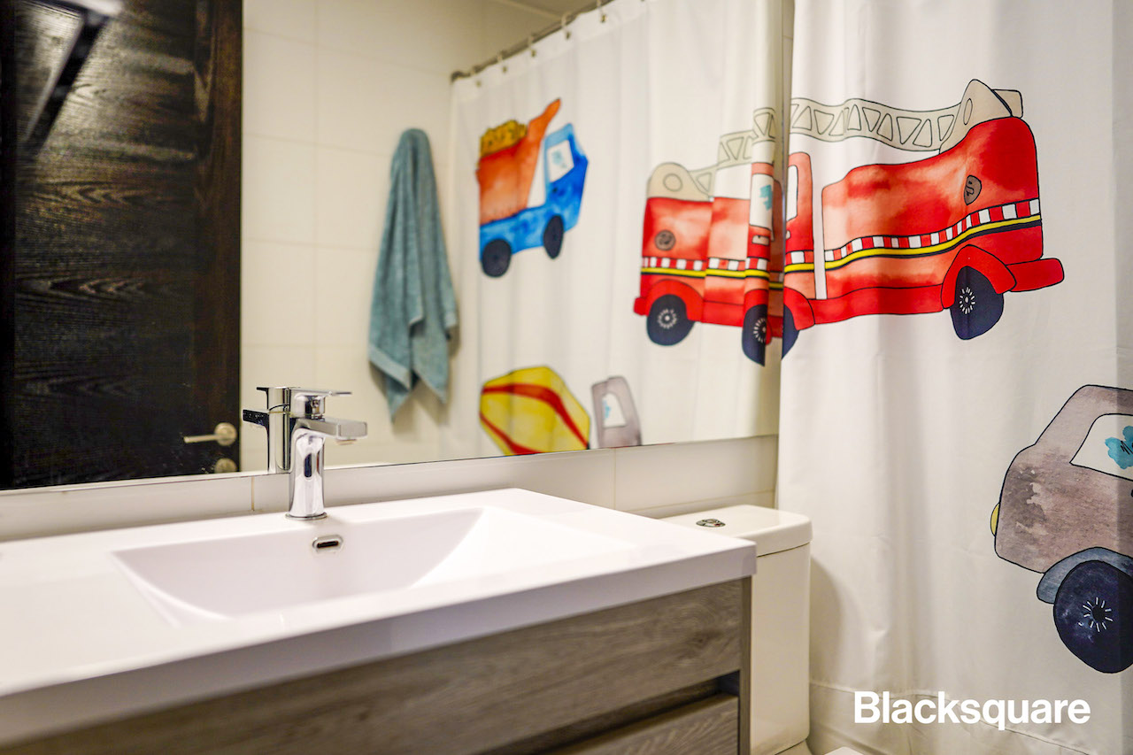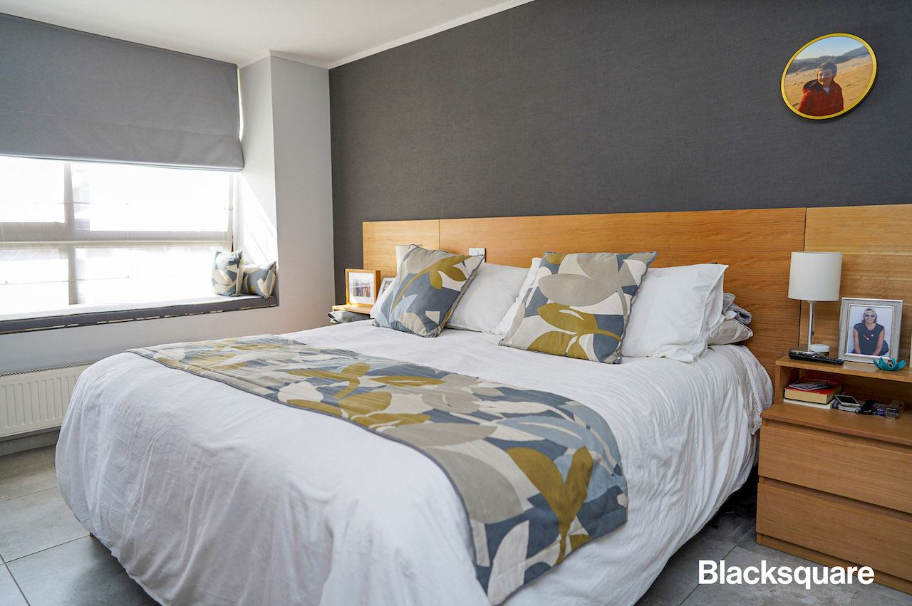 Hacia los dormitorios, está el principal, en suite y con walk in closet. Luego, tenemos dos dormitorios de iguales dimensiones que comparten un baño. Además, hay una cómoda sala de estar y un escritorio adicional.