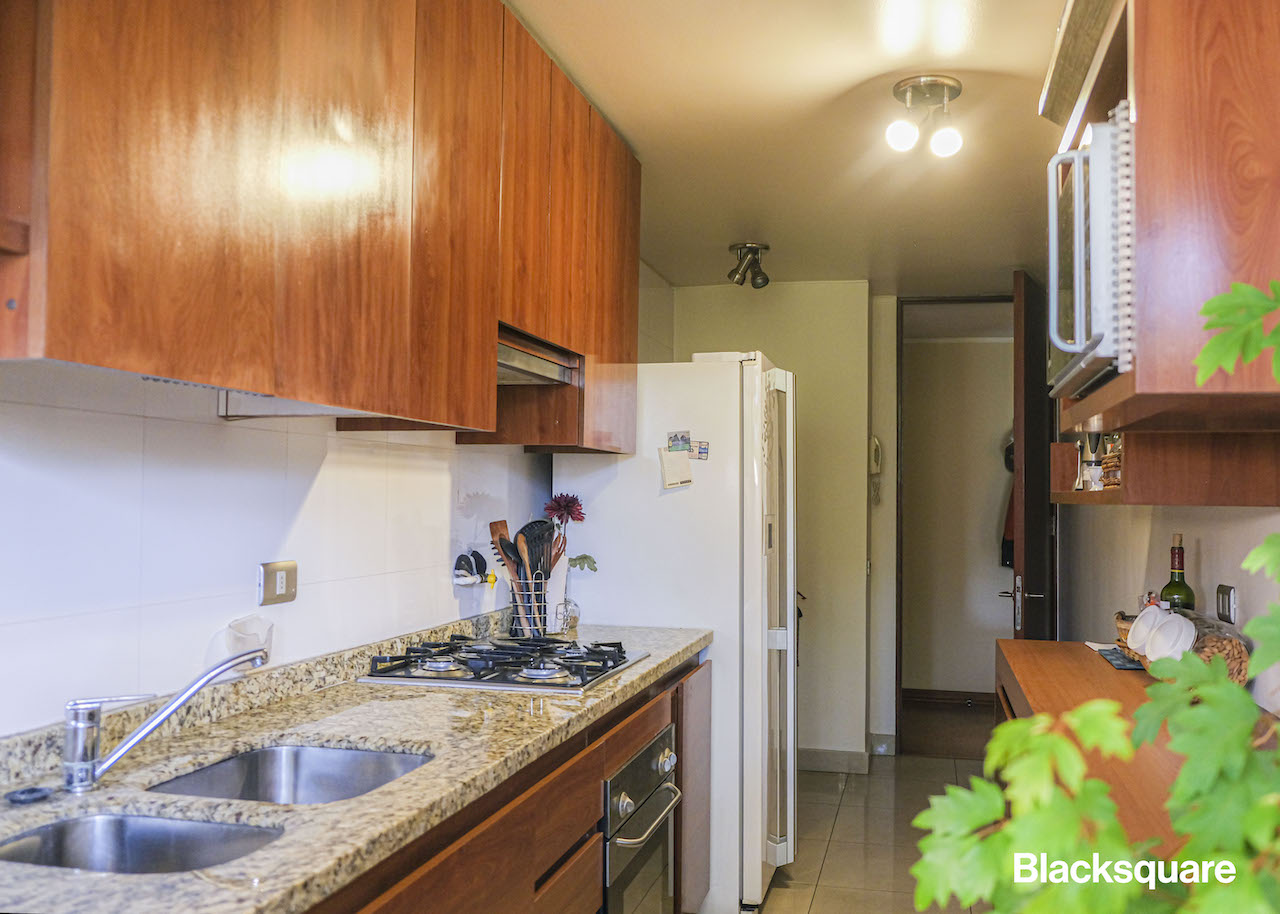 El departamento cuenta 2 dormitorios, el principal, en suite con walking closet. La cocina, con cubiertas de granito, tiene comeor de diario y logia.