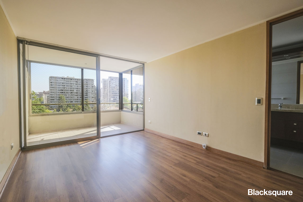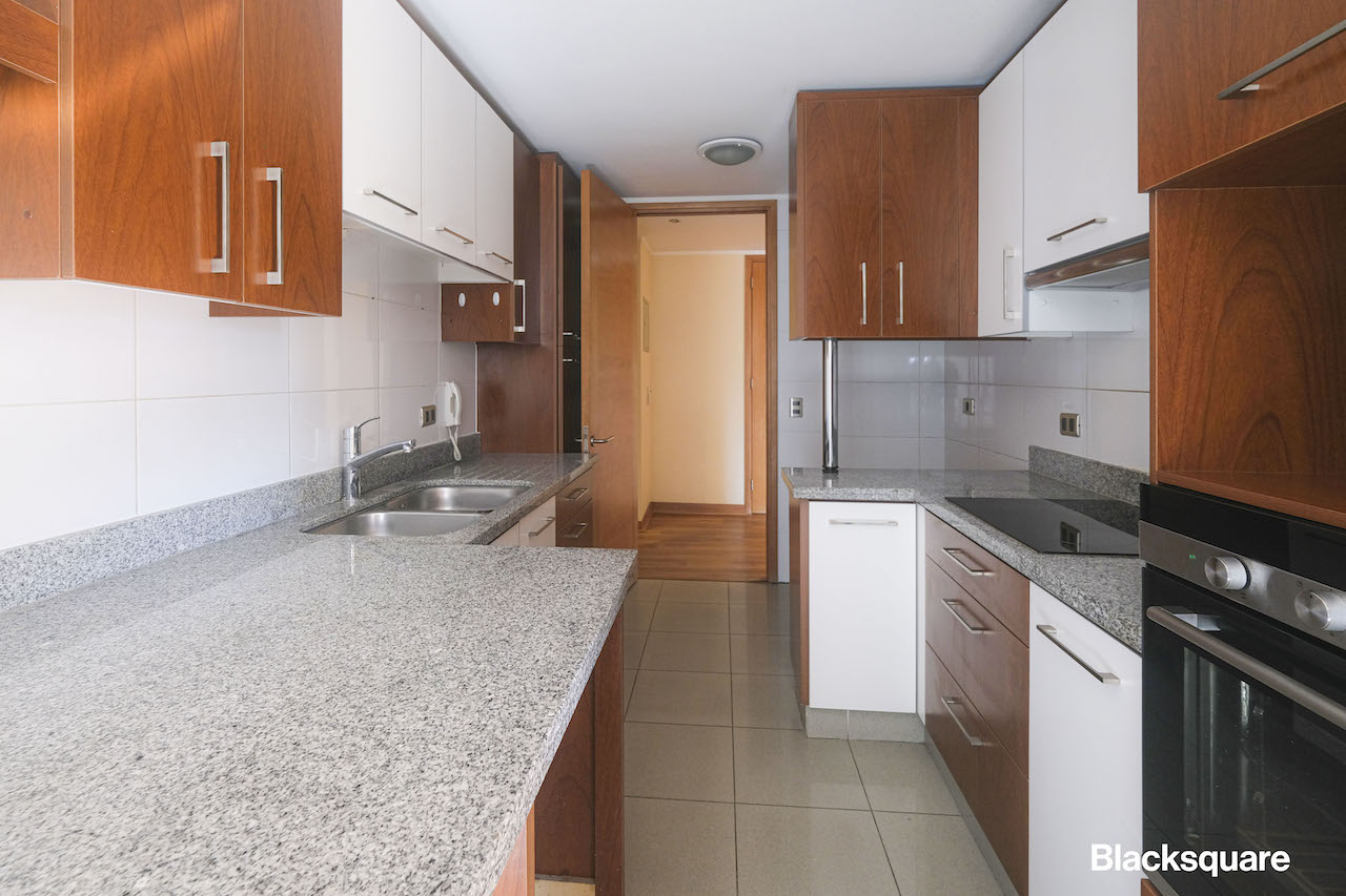 Cuenta con un hall de entrada, el que lleva al amplio living comedor independiente, con salida a una gran terraza con vista despejada nororiente. Luego se encuentra la cocina, la que está totalmente equipada y con finas terminaciones. Además, tiene una amplia logia.
