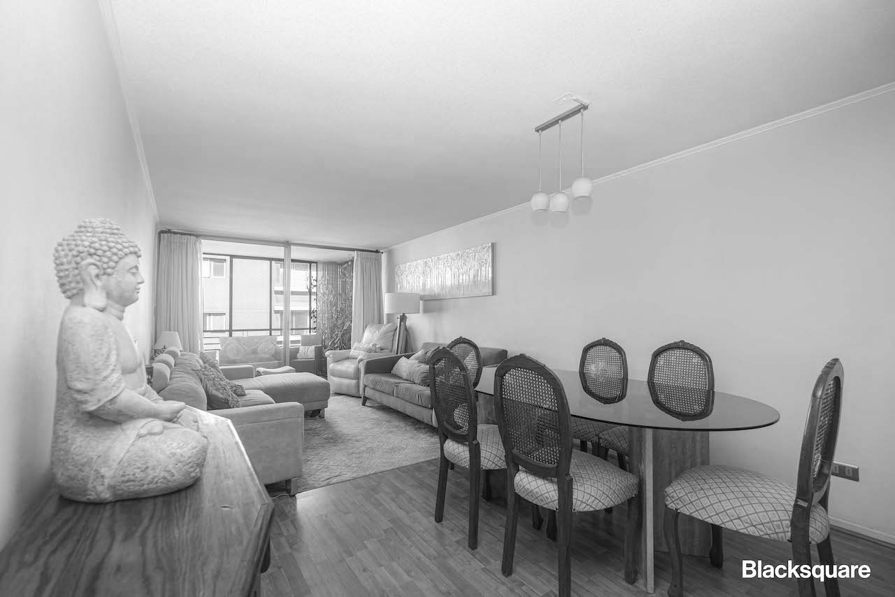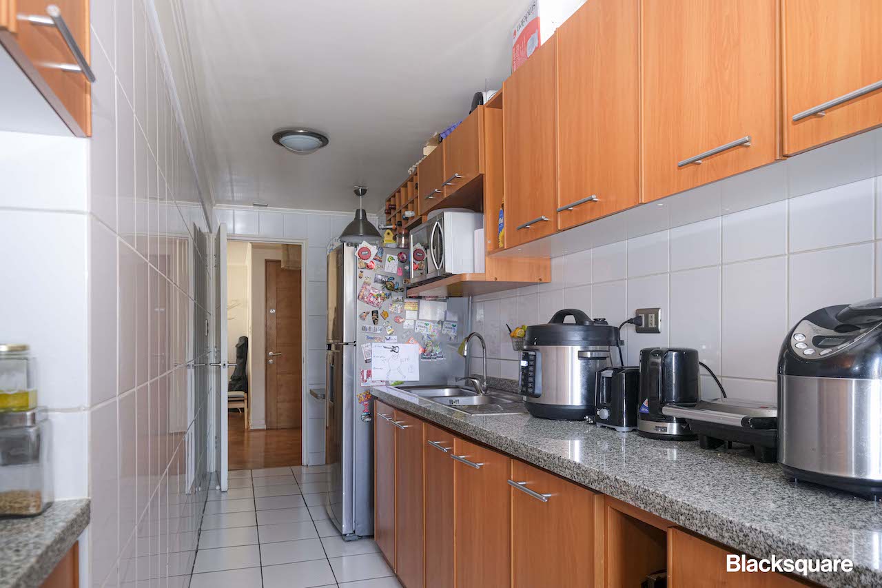 El departamento cuenta con un amplio living comedor con acceso a una terraza, la que tiene vista surponiente. Luego nos encontramos con la cocina, la que está totalmente equipada y tiene logia.