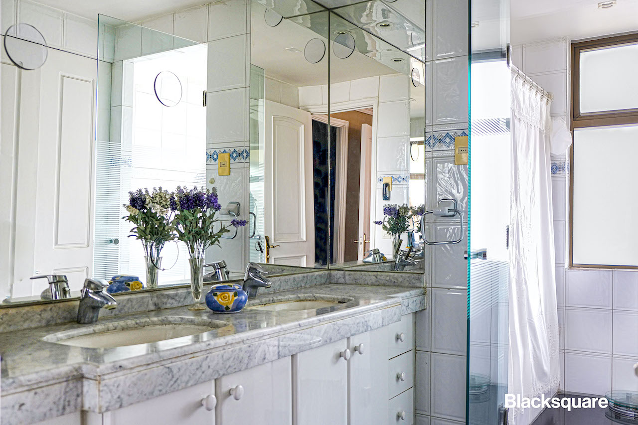 El gran departamento cuenta con un hall de acceso, el que dirige a un baño de visitas, living y comedor separados, ambos con terraza y vista asegurada a la cordillera.
