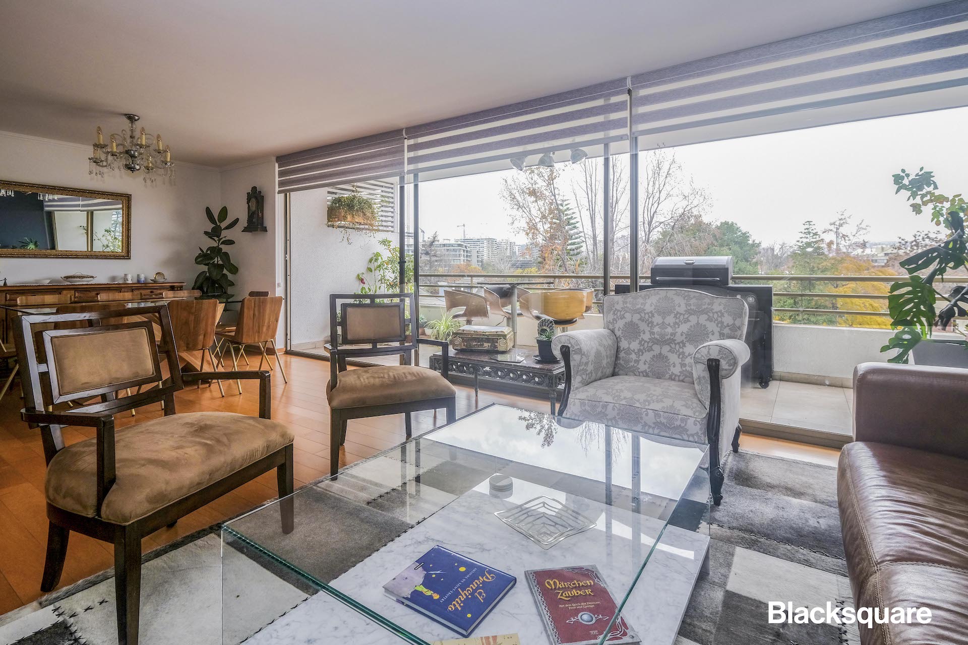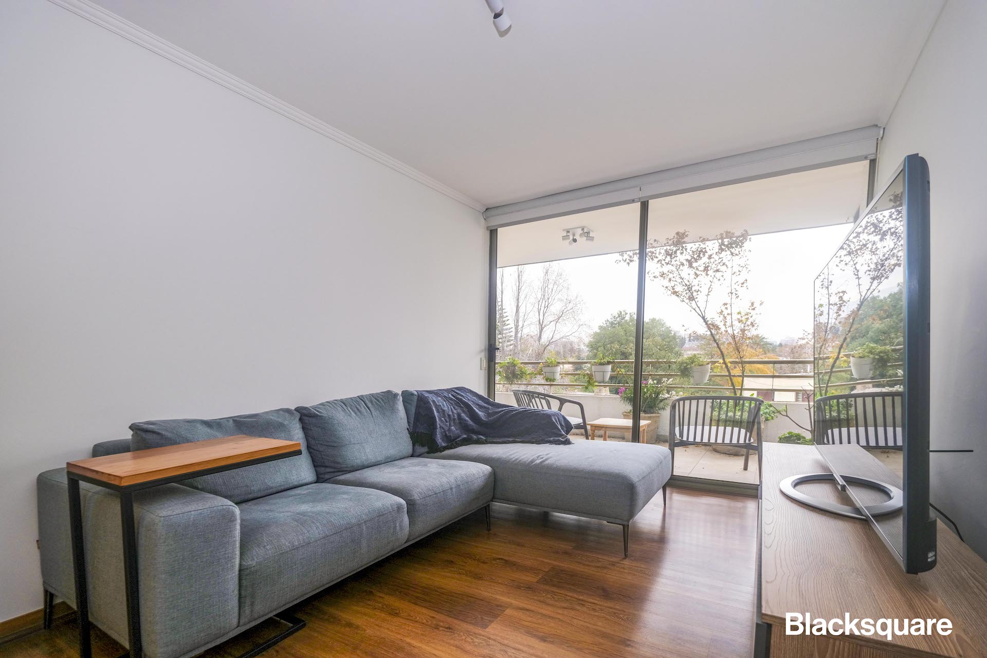 Se accede al departamento a través de un hall, el que cuenta con baño de visitas y que nos lleva al living comedor, cocina y dormitorios. El living comedor, de grandes dimensiones y muy iluminado, con una gran terraza, la que recorre todo el departamento,