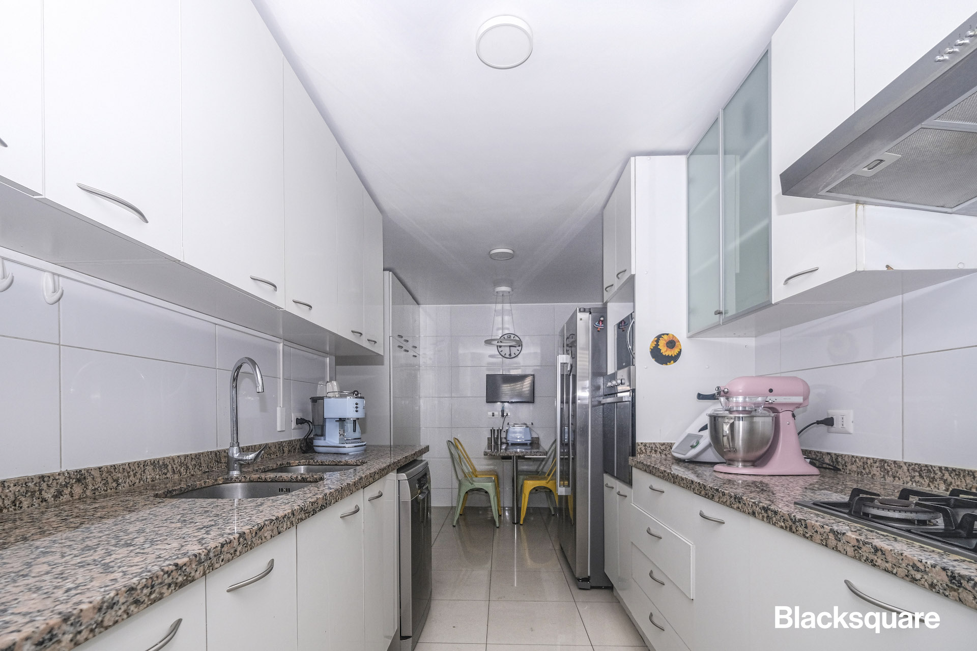 La cocina, de estilo tradicional y totalmente equipada, cuenta con logia, comedor de diario, una amplia despensa y dormitorio de servicio con su baño.