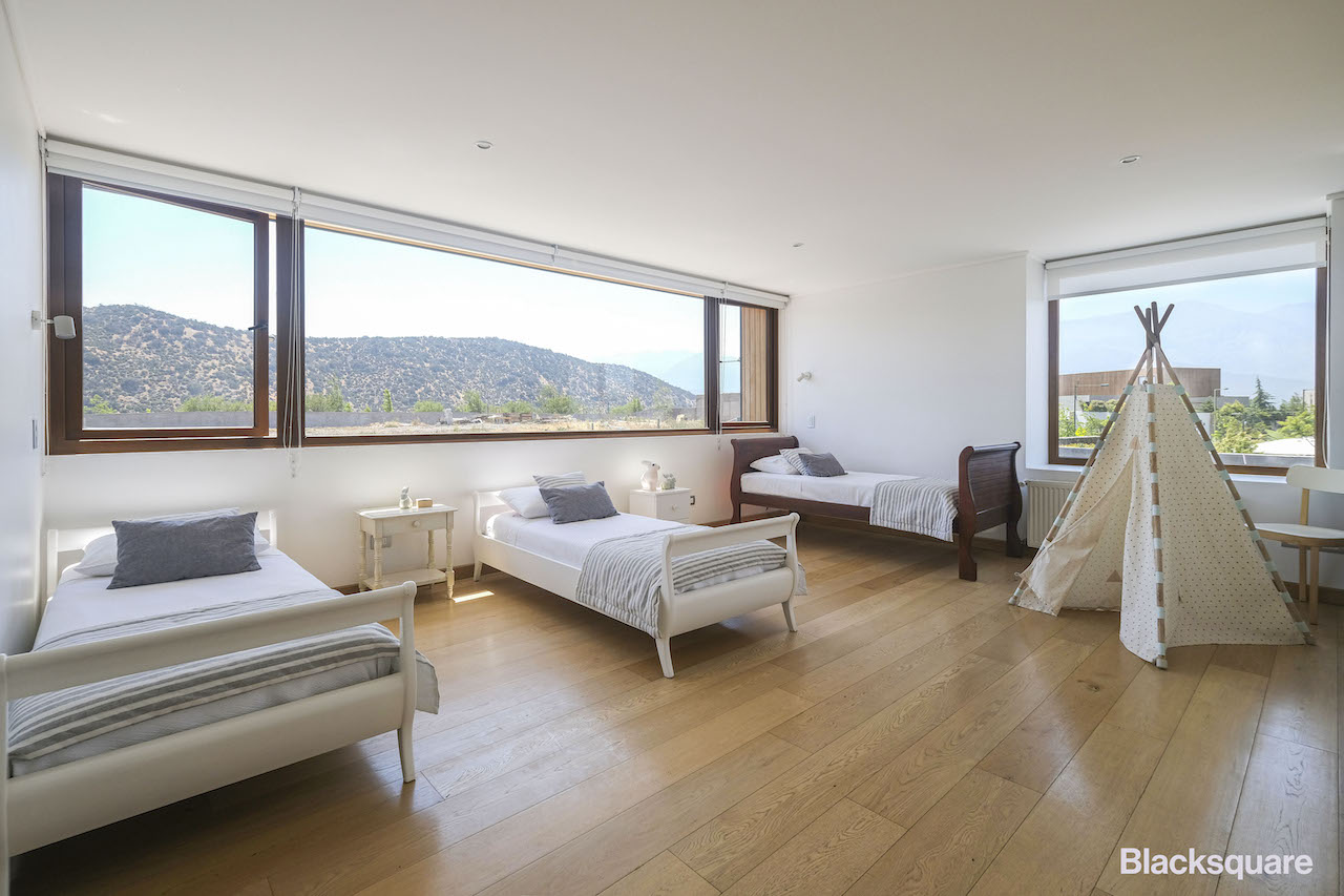 Subiendo por una escala de alto diseño, accedemos al segundo piso, en el que se encuentran los dormitorios, el principal en suite y con walk in closet. Se destaca el patio interior del baño principal, el que le entrega mucha luminosidad y amplitud.