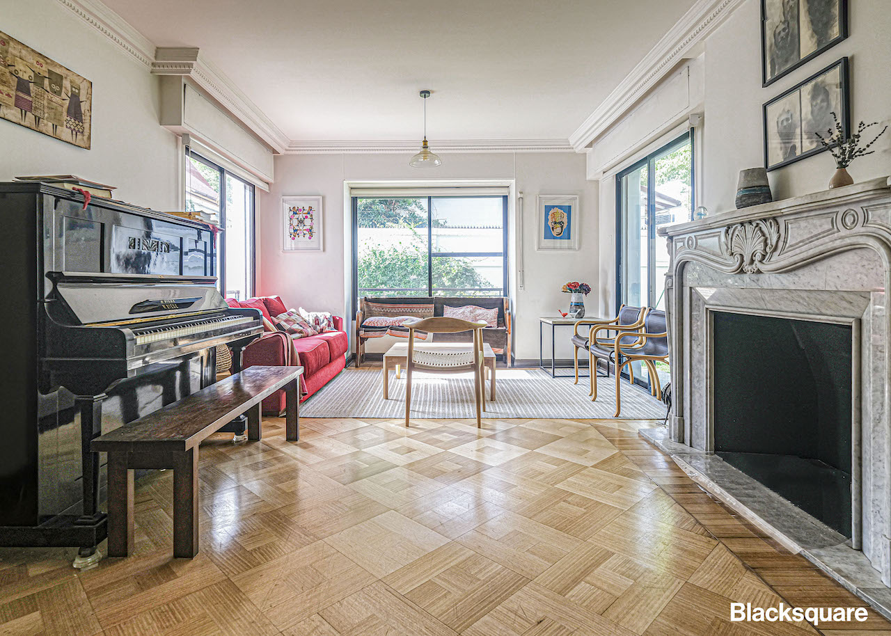 Al ingresar, se encuentra el hall de distribución con el baño de visitas, luego el living, con una maravillosa chimenea de mármol, el que se fusiona con una moderna cocina de gran diseño y terminaciones de última generación. Contigua a esta, está el dormitorio y baño de servicio.