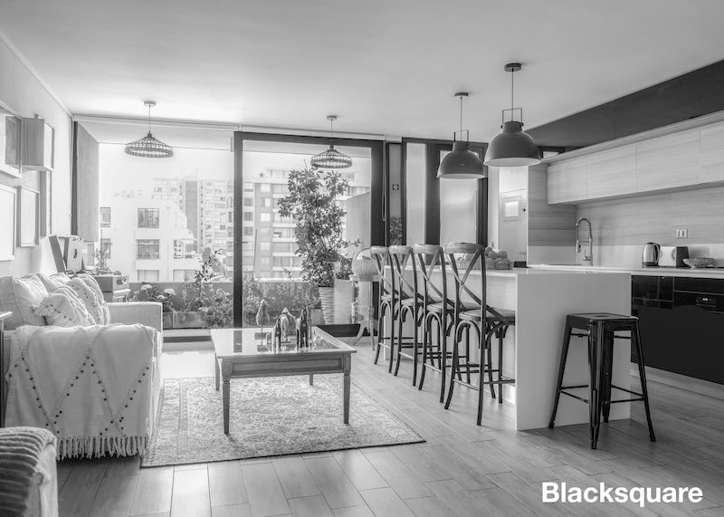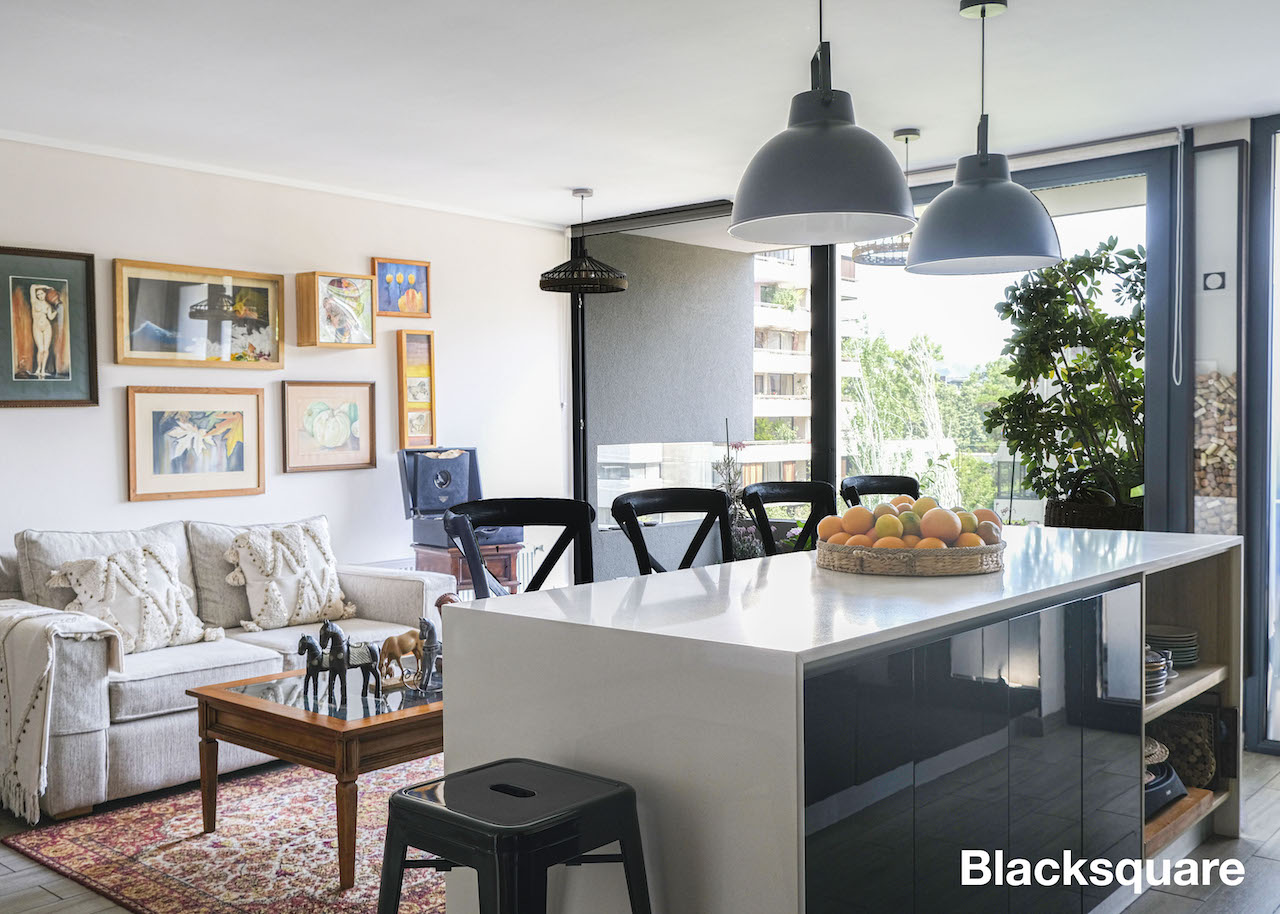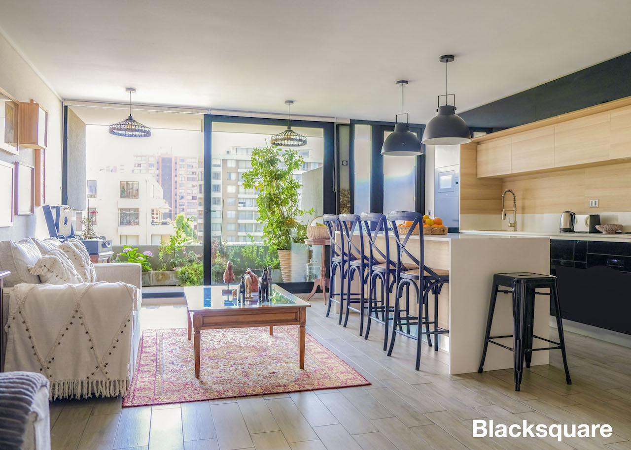Cuenta con un amplio living comedor con cocina americana, ésta es full electric con cubiertas de cuarzo y logia. La terraza tiene vista norte despejada.