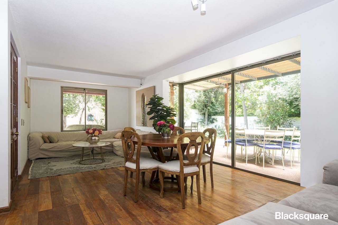 Antes de ingresar a la cocina, hay una sala de estar que puede ser utilizada como escritorio para home office.