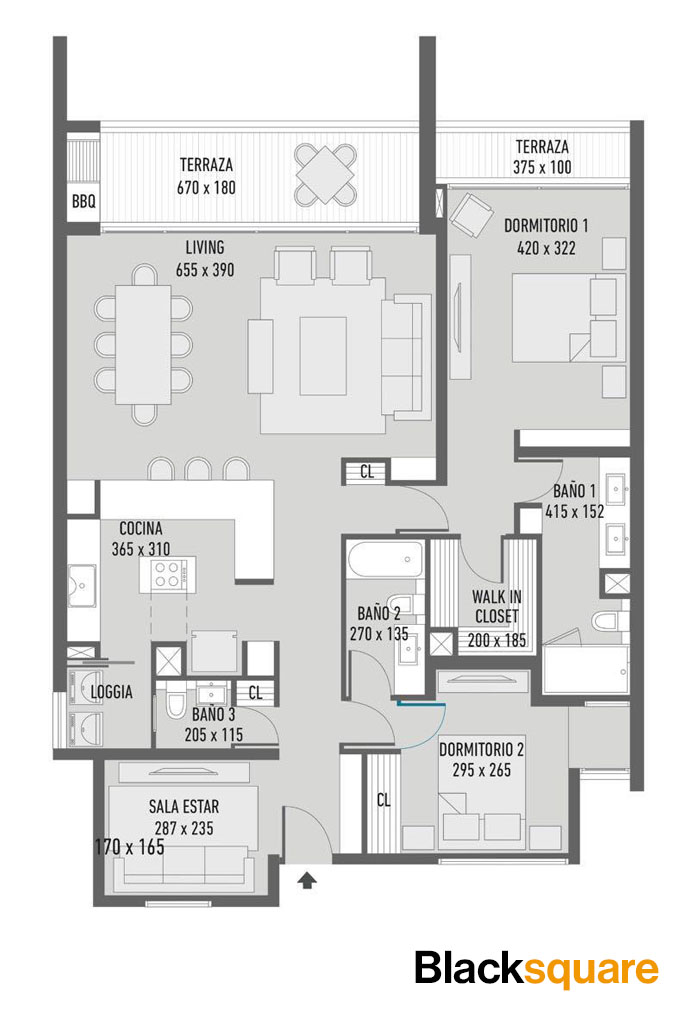 Cuenta con 2 dormitorios en suite con walking closet. Además, tiene una sala de estar o family room, el que también podría utilizarse como un tercer dormitorio.