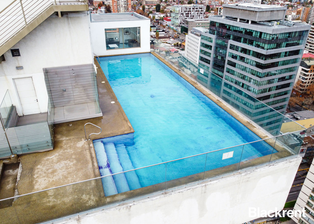 Moderno departamento tipo estudio con vista asegurada a Santiago, se ubica en céntrica zona de Providencia, cercano a la estación de metro Manuel Montt, oficinas, restaurantes y todo tipo de servicios.