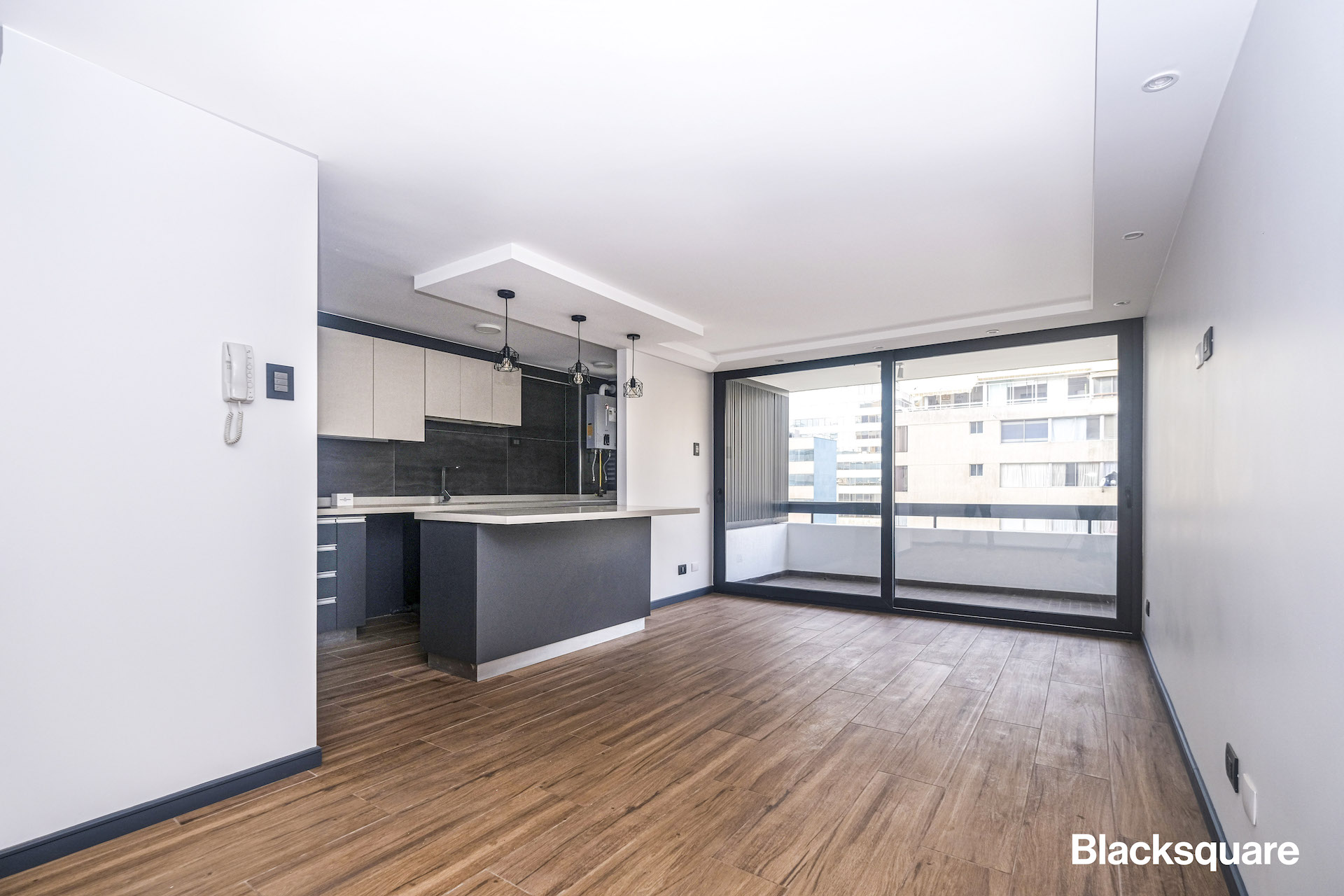 Se ingresa a un amplio living comedor, el que se extiende a la gran cocina americana, esta última completamente equipada y con logia. Además, el living se integra a una amplia terraza, con orientación suroriente.