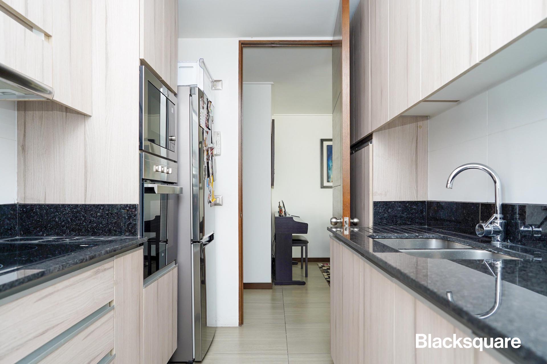 La cocina de estilo clásico y con logia, cuenta con cubiertas de granito (black) y está totalmente equipada. Luego, está el segundo dormitorio con acceso a la terraza, el que tiene un baño completo, el que también puede ser usado para las visitas.
