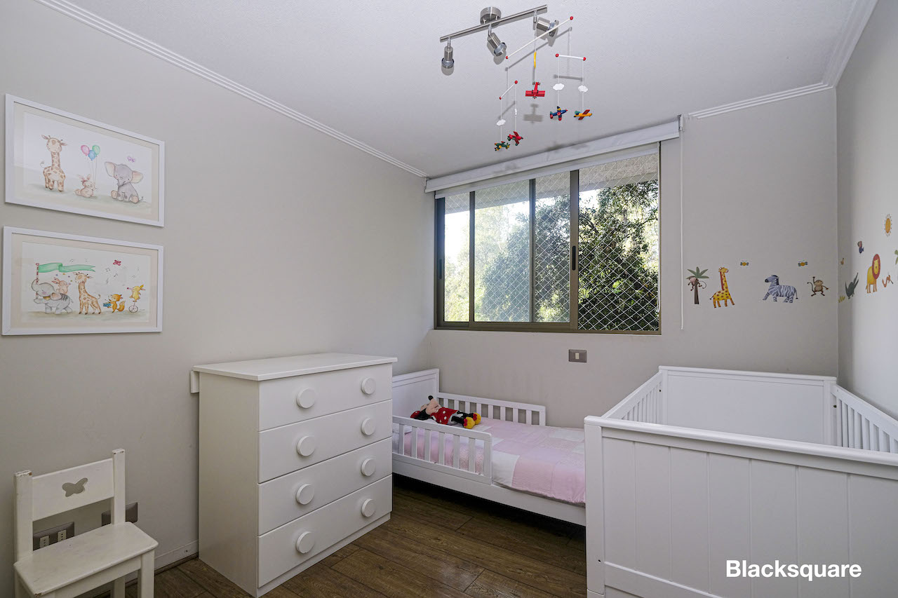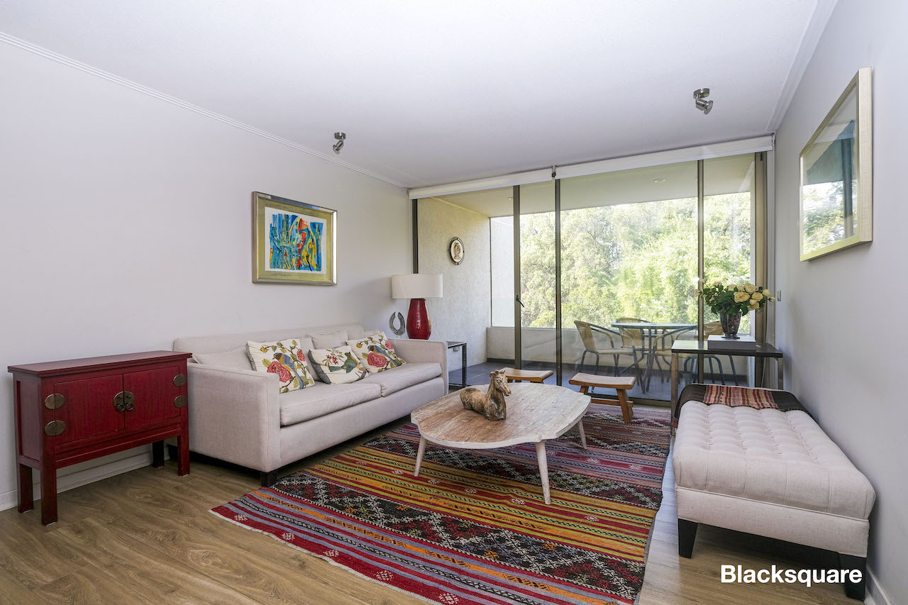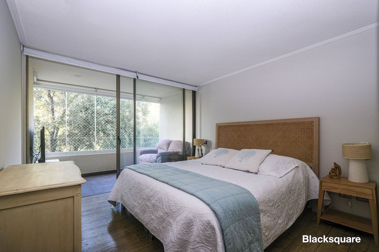Acogedor departamento seminuevo (2016) ubicado en tranquila zona de San Carlos de Apquindo. Destaca el que está inmerso en un parque, próximo a una lagunas con aves silvestres. De carácter familiar, ideal para que los niños puedan jugar con toda libertad en medio de la naturaleza.