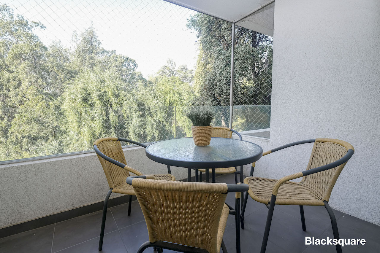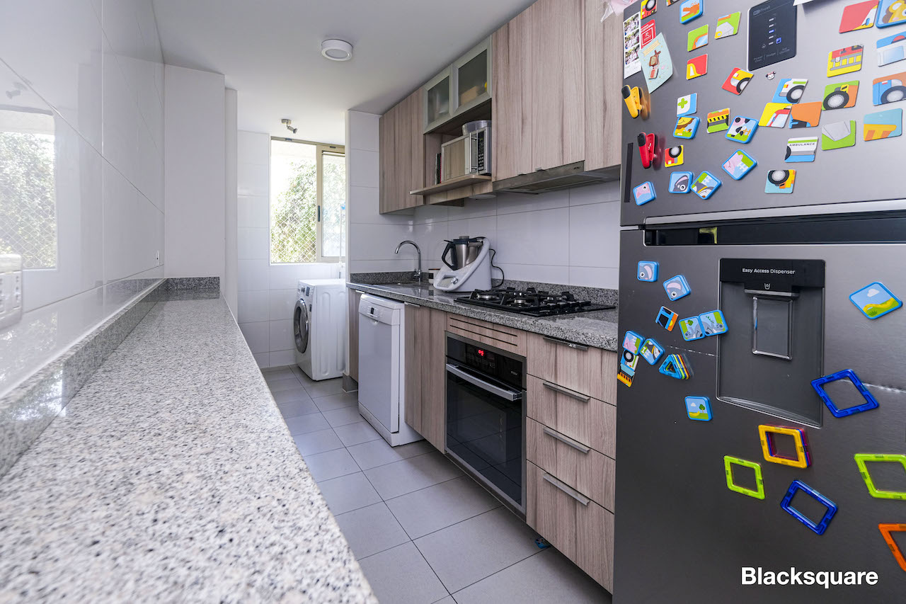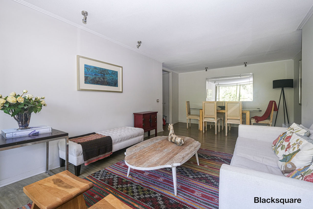 Acogedor departamento seminuevo (2016) ubicado en tranquila zona de San Carlos de Apquindo. Destaca el que está inmerso en un parque, próximo a una lagunas con aves silvestres. De carácter familiar, ideal para que los niños puedan jugar con toda libertad en medio de la naturaleza.