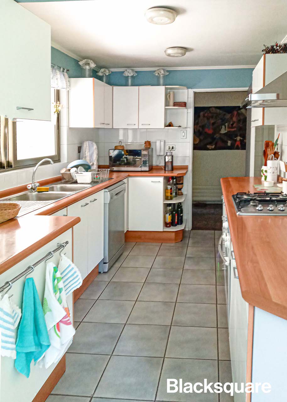 Se accede a través de un hall de entrada, el que lleva a un amplio living comedor, el que tiene salida a una terraza y al jardín, en este último hay una gran piscina. Próximo al living se encuentra la cocina, la que cuenta con comedor de diario con vista al jardín, baño de servicio y logia.